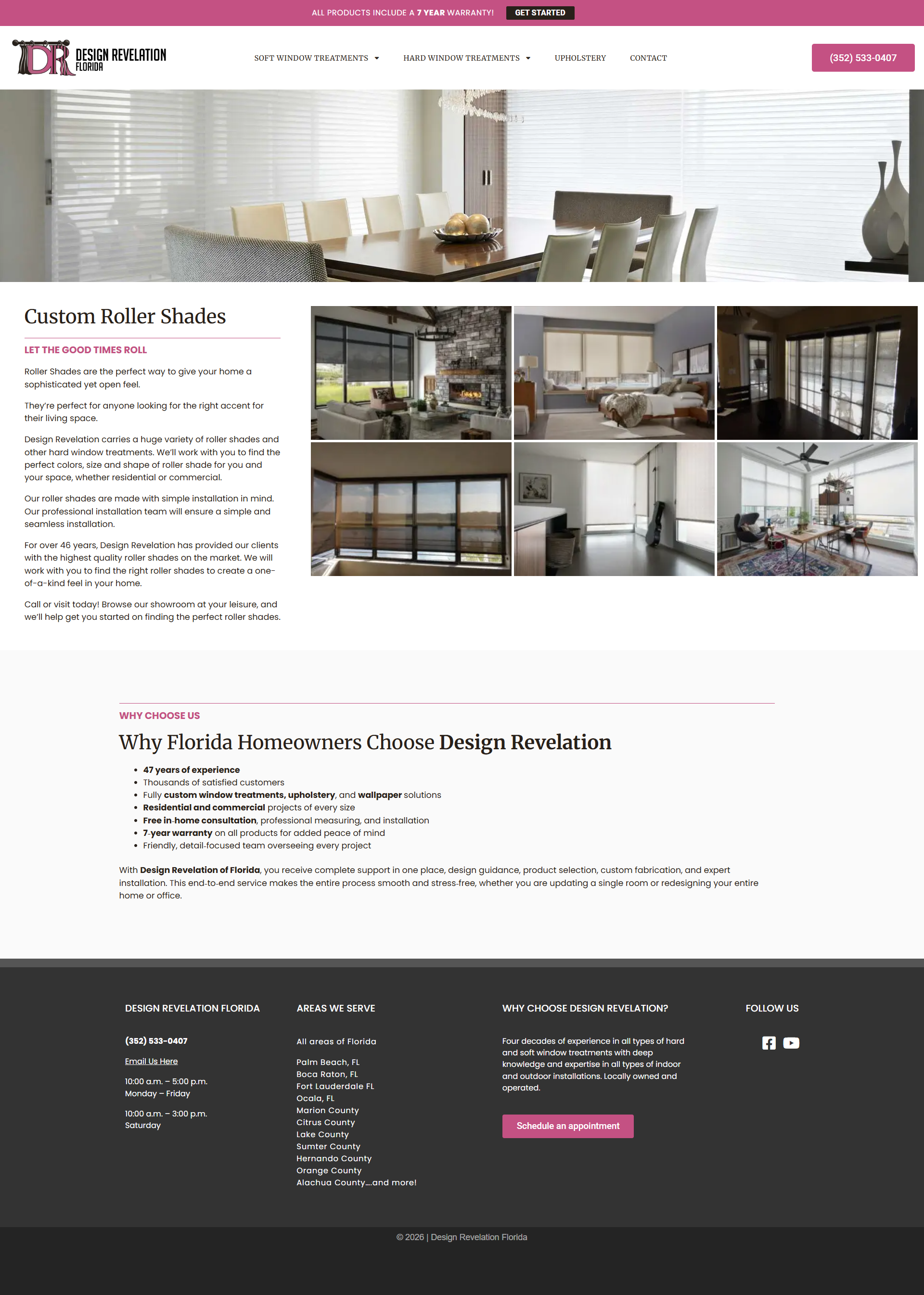 With over four decades of experience, Design Revelation of Florida has become a trusted name for custom window coverings that combine craftsmanship with innovation. Our expert team works closely with you from consultation to installation, ensuring your custom roller shades fit seamlessly into your décor and lifestyle. If you’re looking for elegant, low-maintenance, and energy-efficient window solutions, explore our full range of roller shades and discover how the right window treatment can completely transform your space.